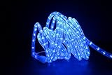 Direct-Lighting 24FT blue LED rope light is made with commercial grade standard. Total led bulbs is 288 pcs. The power input is 120VAC line voltage, therefore no transformer is required. The heavy duty UV protected flexible clear PVC outer tube is heat and water resistant, therefore this product is suitable for indoor and outdoor use. Can be expand up to 216 feet