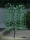 - 200 LED willow tree with green light,black trunk with perfect curve,stable base stand with 4 ground stakes attached
