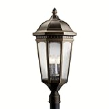 Top Wish List Kichler Lighting 9533RZ Courtyard 3-Light Incandescent Outdoor Post Lantern, Rubbed Bronze with Clear Seedy Glass in USA