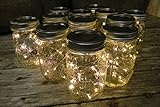Create the appearance of fireflies in a jar with this unique light display that creatively combines a 4.5 strand of warm white battery operated LED fairy lights and a 16 ounce Mason jar. Simply feed the light strand through the mouth of the jar and tape the compact battery pack to the bottom of the lid and for a beautiful light display suitable for weddings, events and home d¨¦cor. Display them as centerpieces, pathway lighting, or hang them from shepherd hooks, branches, or ceilings.