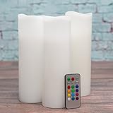 Here are all great features of Richland Wavy Top Flameless LED Pillar Candles White 3" x 9" with Remote Control Set of 24 :