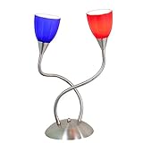 The versatile Medusa® lamp provides a bold color statement in any room and adapts to your need for function paired with style. Fully articulated 24 inch snake arms allow you to direct light where you need it. Features a brushed steel base and frame and interchangeable colored glass sconces with interior opal flashing. Table lamp has six foot cord. UL listed. Takes 25 watt candelabra bulbs.