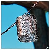 Four Seasons Courtyard, 10 Light, Moroccan Light Set, Die Cut Pattern In Antique Copper Finish, Low Lead Brown Cord, White Bulbs, 24" Lead Cord, 8" Bulb Spacing, 6" Tail Cord, UL Listed, PVC Box.