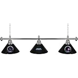 Illuminate your game room, garage or collection with an officially licensed 14 inch Single Shade Bar Lamp. This premium lighting fixture looks great on or off with officially licensed logos on both sides of the polyresin shade. The shade is accented by polished metal hardware and chain. Over nine feet of cord provides many hanging options. Brighten up your favorite area with this one of a kind officially licensed single shade bar lamp.