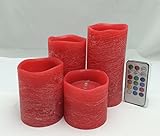 Fair Prices Adoria TM-Wax Battery Operated red Pillar Candles with rustic effect-Multi Function Remote with Timer-Color Changing flicker/Night Light Mode Options-floral scent,3 by tall 3",4",5",6", set of 4 in USA